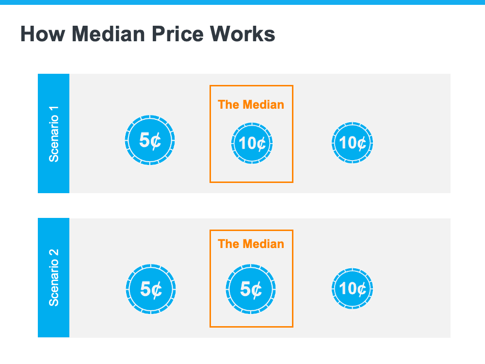 “The median sale price measures the ‘middle’ price of homes that sold, meaning that half of the homes sold for a higher price and half sold for less . . . For example, if more lower-priced homes have sold recently, the median sale price would decline (because the “middle” home is now a lower-priced home), even if the value of each individual home is rising.”